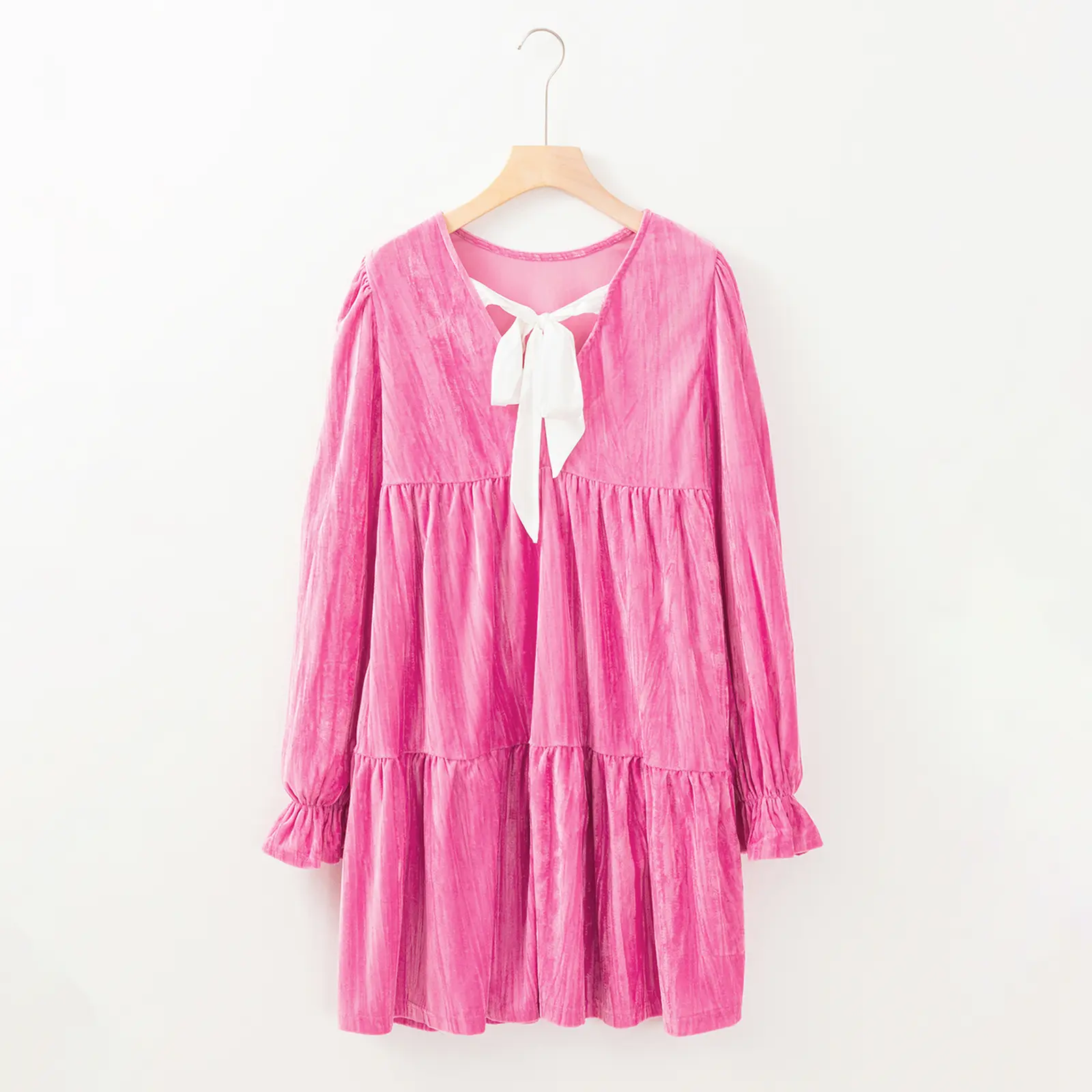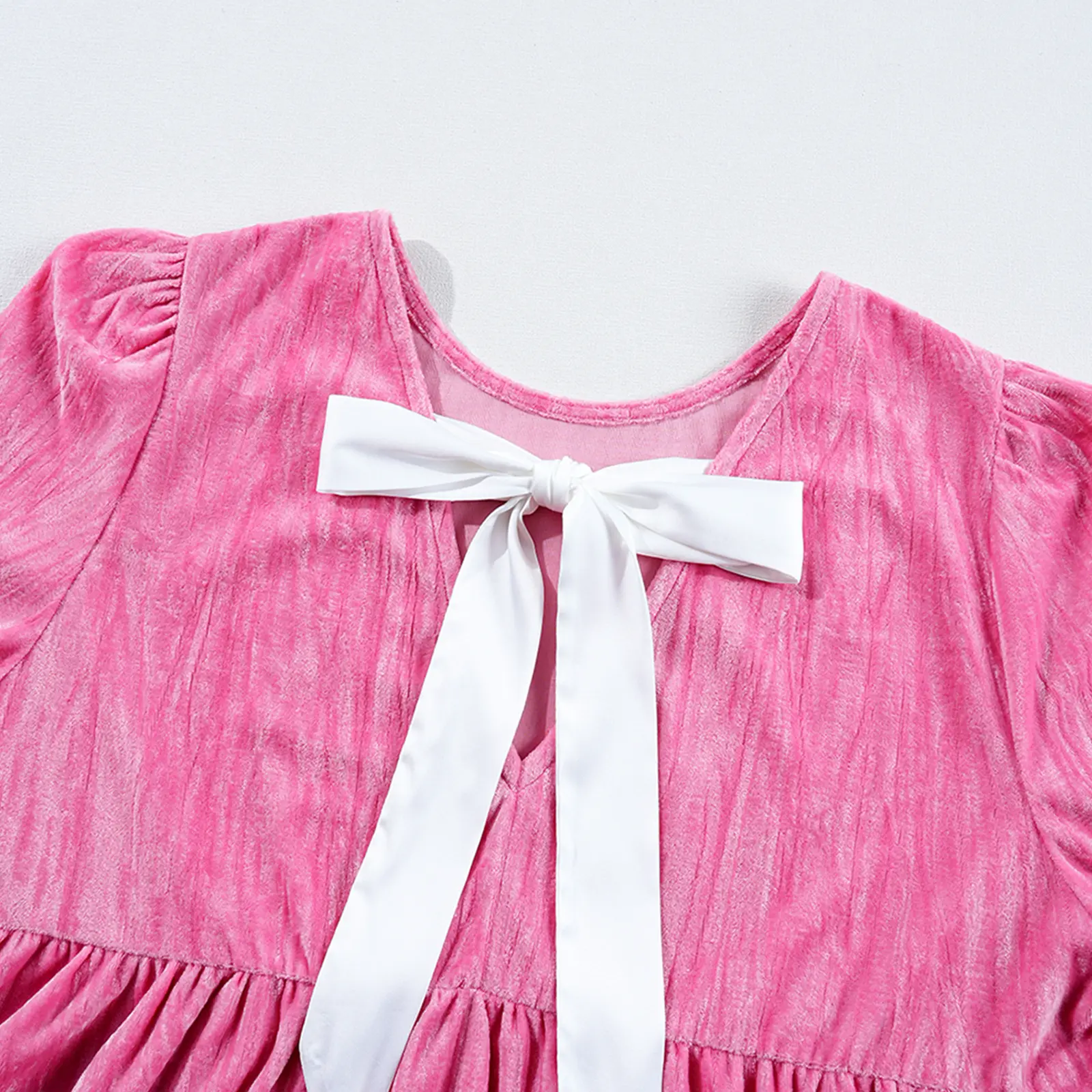 The velvet texture catches the light elegantly, ensuring you stand out with confidence. It's a stylish yet comfortable choice for family gatherings. The balanced design offers a sweet but not too sweet look, making it ideal for festive or cozy occasions.