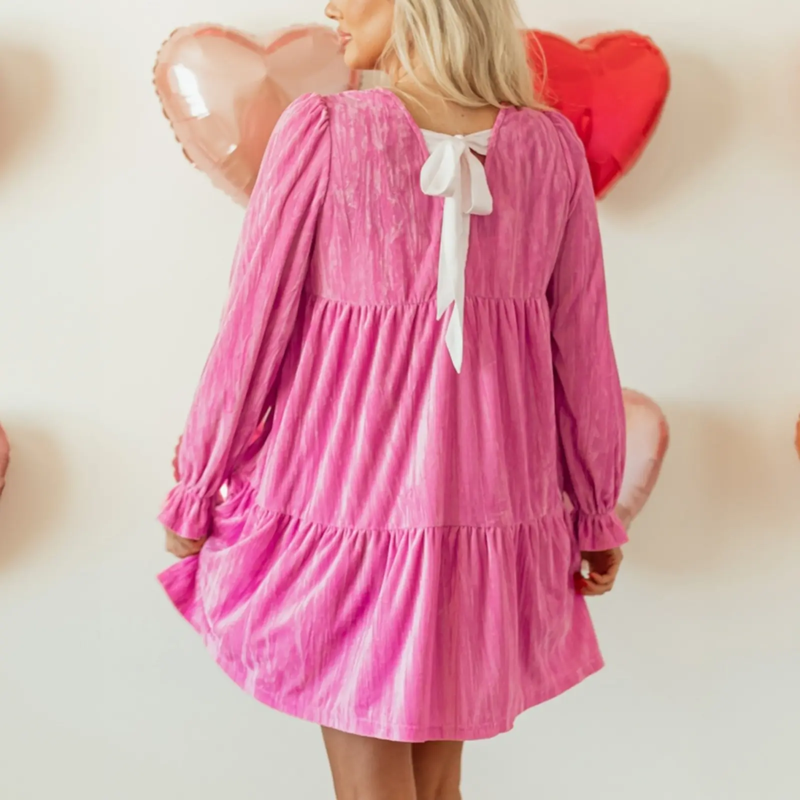 The dress features unexpected practicality with convenient pockets. It beautifully blends style with everyday function. The soft pink hue and delicate ruffles create a sweet, romantic look, ideal for a candlelit dinner. It's also perfect for a night out or party, Christmas, Valentine's Day.