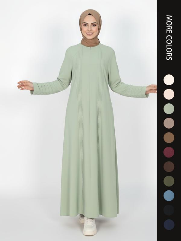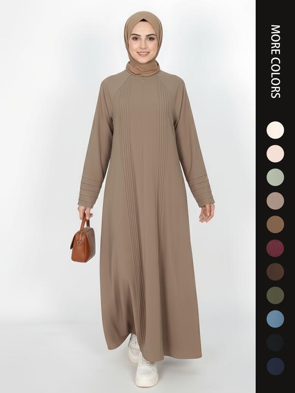 Elegant Simple Pleated Zipper Abaya, Modest Islamic Clothing for Women, Stylish Long Sleeve Dress, Perfect for Special Occasions, Loose Abaya, Traditional Abaya