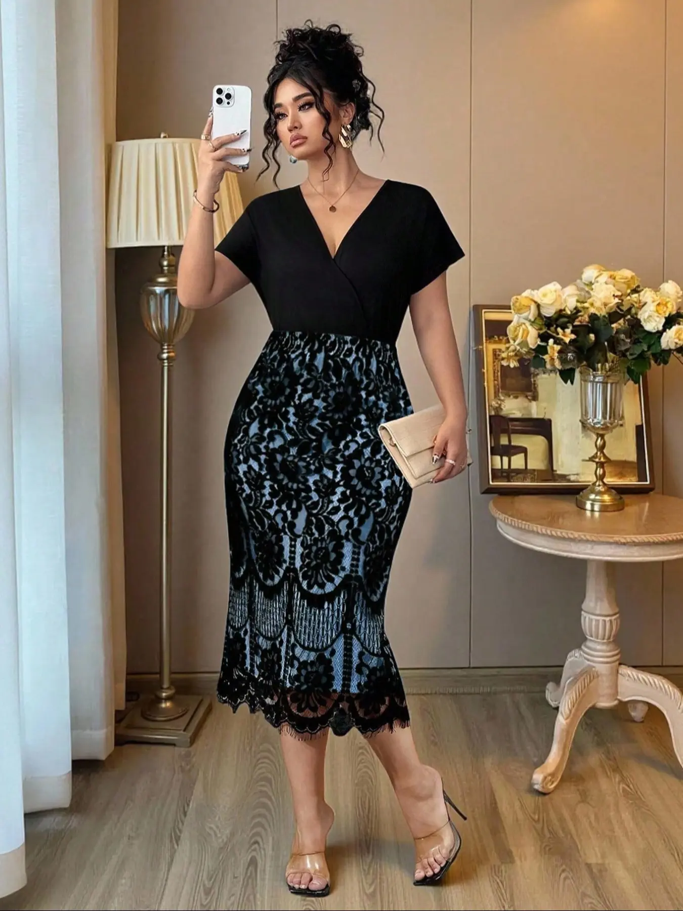 This dress is so pretty I love the way it looks on me now I do have to wear Shapewear with this dress