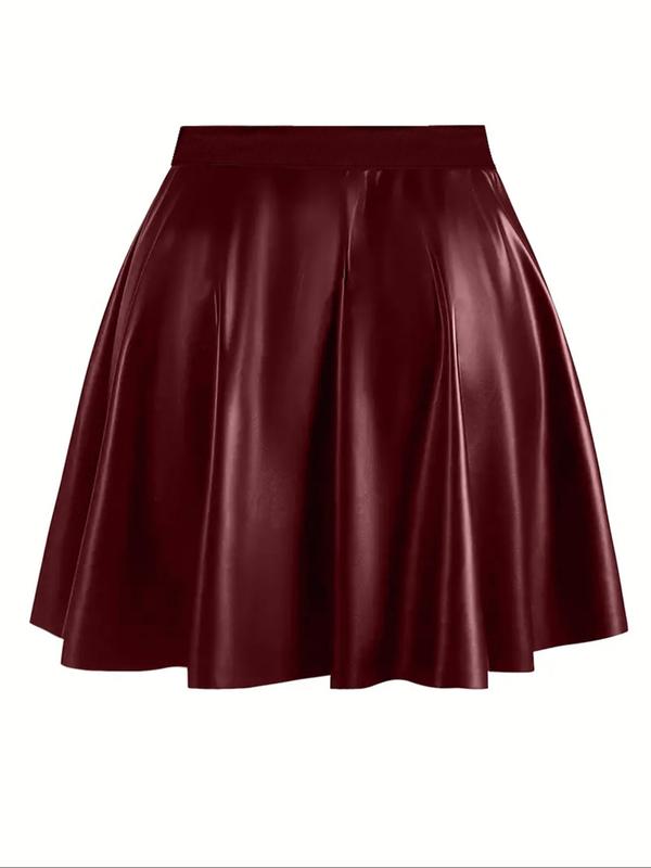 5. Elegant PU Leather Skirt, High Waist Slimming Pleated Design, Fashionable Women's Clothing for Fall & Winter Seasons