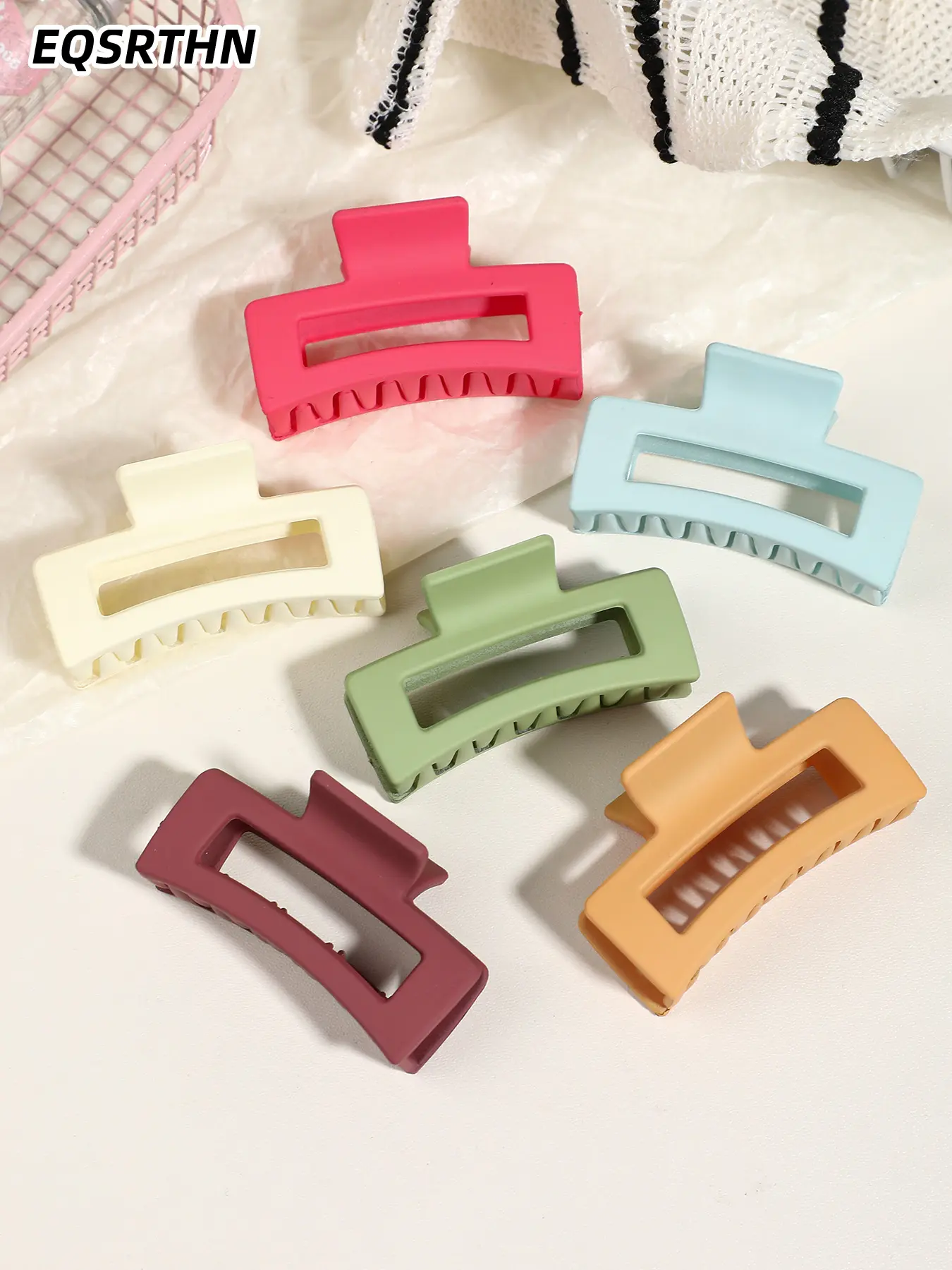 6 pcs elegant rectangular female hair clip-sweet geometric design, solid color (green, blue, white, light pink, dark purple, ginger), plastic material, very suitable for Valentine's Day or daily style, cute hair clip, Hair Claws Set