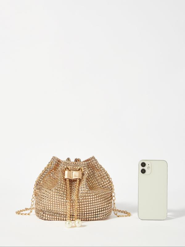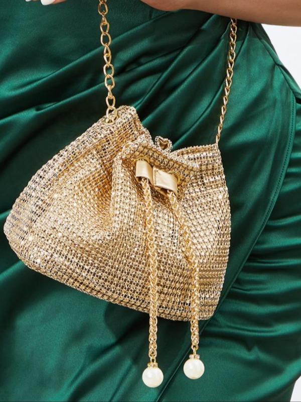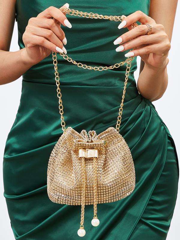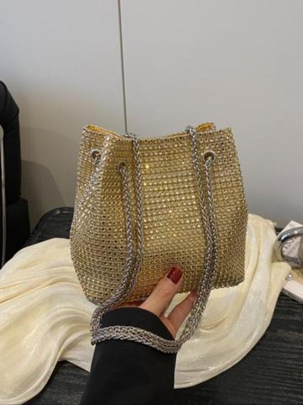 Elegant Rhinestone Evening Bag for Women, Party Style Chain Design, Bridesmaid & Bride Shoulder Clutch, All Season Fashion Accessory, Adjustable Strap Purse