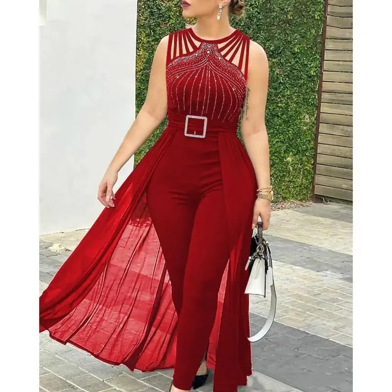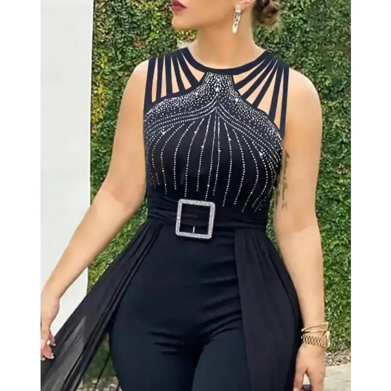 JumpsuitforWomenPartyCasualRhinestoneMeshSleevelessJumpsuitsSkinnyOutfitsLadiesSuitGiftGift