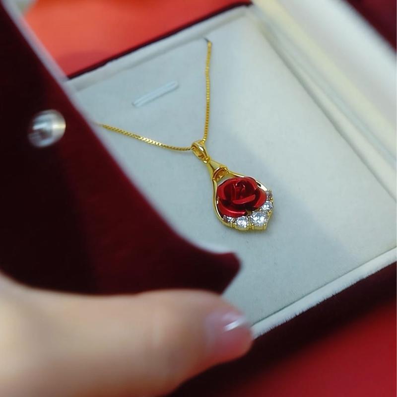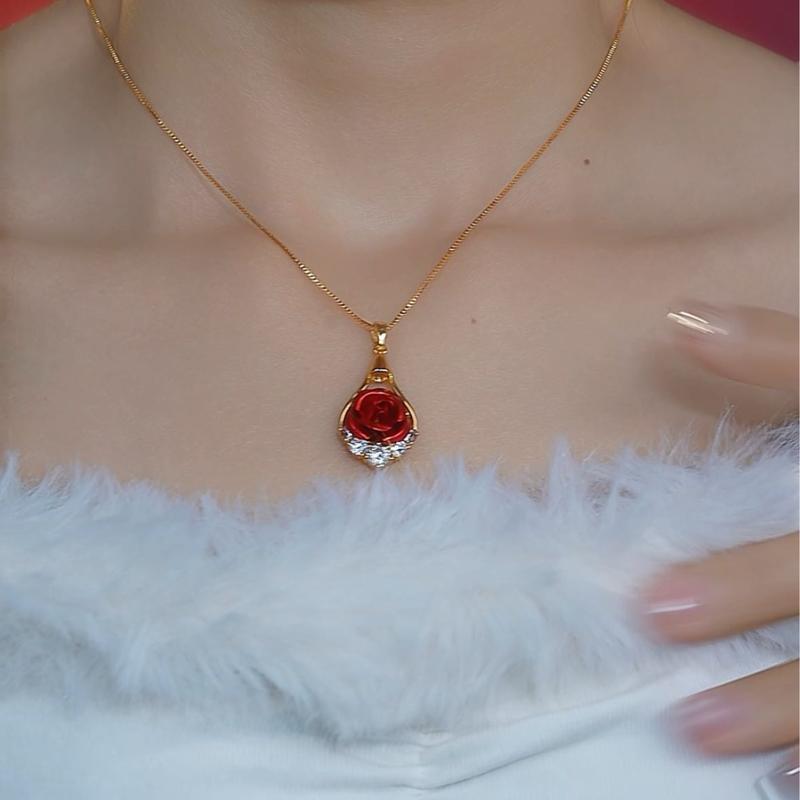 🌸 New Rhinestone Inlaid Rose Flower Light Luxury Fashion Elegant Rose Pendant Exquisite Atmospheric Water Drop Necklace 🌸