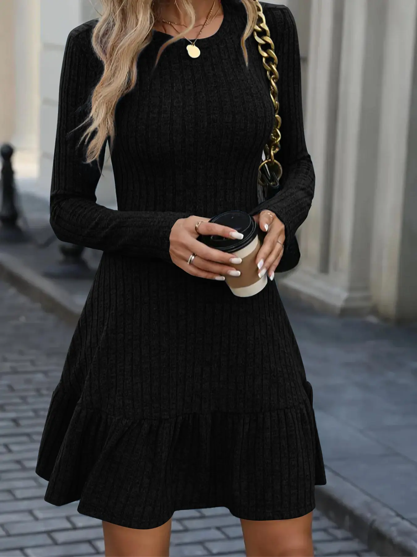 Women's Casual Slim-Fit Long Sleeve Dress, Plain A-Line Design, Moderate Fabric, Perfect for Fall & Winter Seasons! Flattering! #slimfitdress #falldresses #flatteringdresses