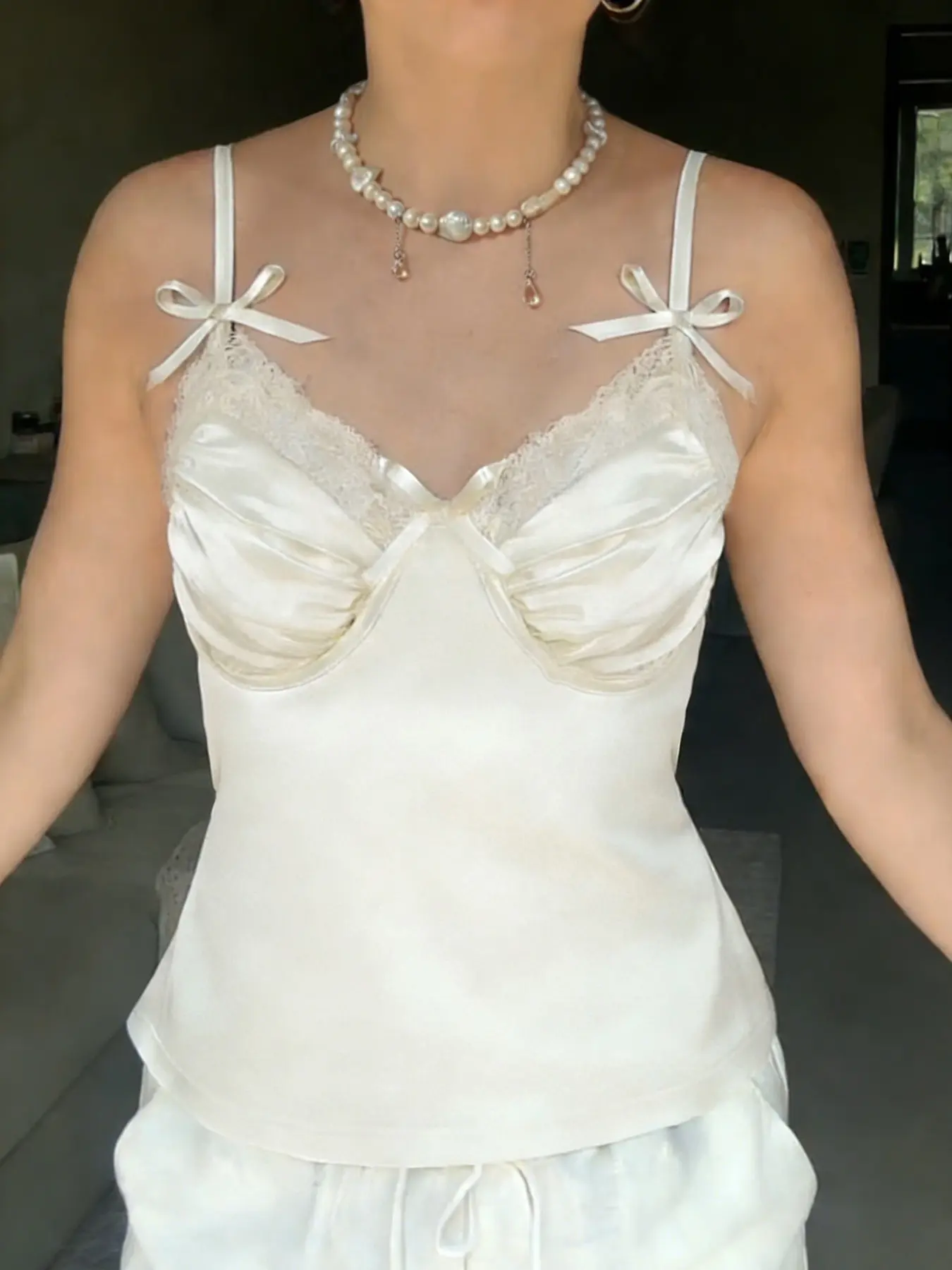 Elegant Satin Look Sleeveless Spaghetti Strap Crop Top with Contrast Lace and Bow, Y2K Aesthetic for Summer Fashion, Short Fit Casual WearElegant Satin Look Sleeveless Spaghetti Strap Crop Top with Contrast Lace and Bow, Y2K Aesthetic for Summer Fashion, Short Fit Casual WearElegant Satin Look Sleeveless Spaghetti Strap Crop Top with Contrast Lace and Bow, Y2K Aesthetic for Summer Fashion, Short Fit Casual WearElegant Satin Look Sleeveless Spaghetti Strap Crop Top with Contrast Lace and Bow, Y2K Aesthetic for Summer Fashion, Short Fit Casual WearElegant Satin Look Sleeveless Spaghetti Strap Crop Top with Contrast Lace and Bow, Y2K Aesthetic for Summer Fashion, Short Fit Casual Wear
