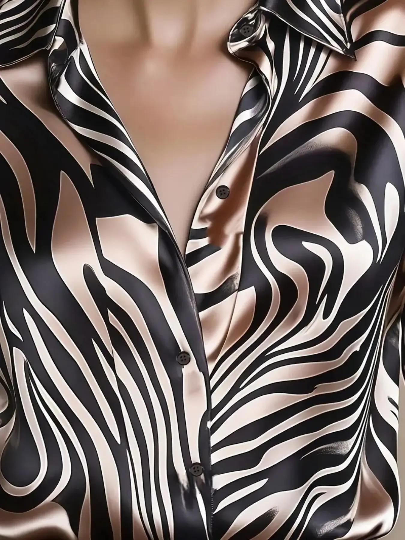Elegant Satin Zebra Print Blouse for Women, Spring & Fall Fashion, Stylish Ladies' Top, Comfortable and Chic Design #aifashion #fashionablewomensclothing #shirtstyle #fashioninspowomen #blouseoutfit #blousesfashion #fashionshirt #womensapparel #styleforwomen #oversizedblouse