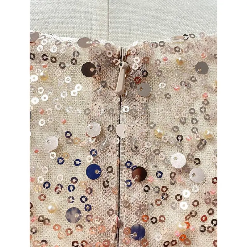 5. Sequin Patchwork Evening Dress for the Fashion-Forward Woman Formal Womenswear Elegant High Waist Long Sleeves Pleated Fit Elegance