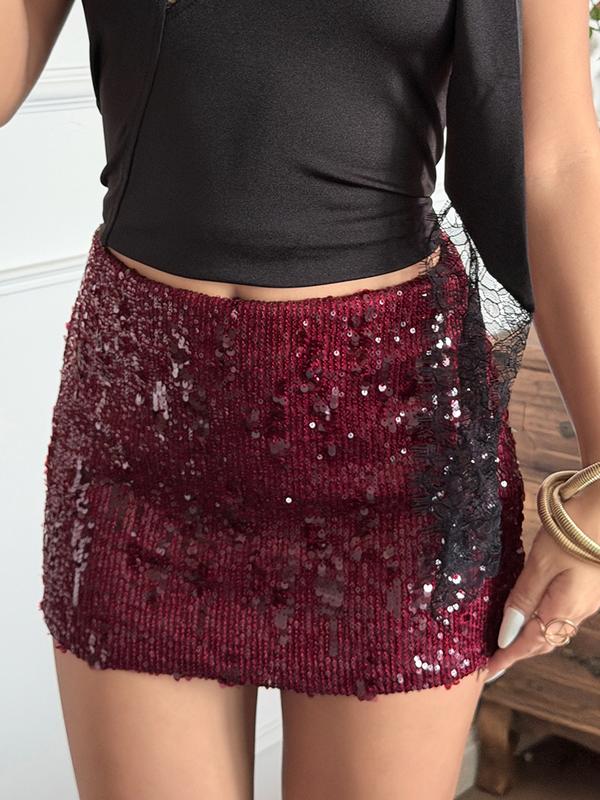 Elegant Sequined Skirt for Women, Slim-Fitting Christmas Party Dress, Short A-Line Skirt for All Seasons, Fashionable Street Style, Stretch Skirt