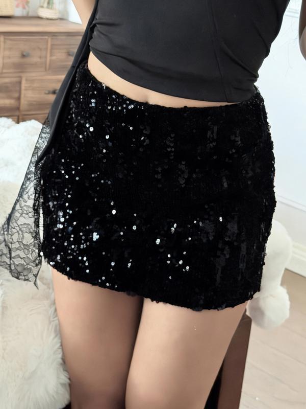 Elegant Sequined Skirt for Women, Slim-Fitting Christmas Party Dress, Short A-Line Skirt for All Seasons, Fashionable Street Style #TikTokShopCyberMonday #spotlightfinds #ootd/ #clothing