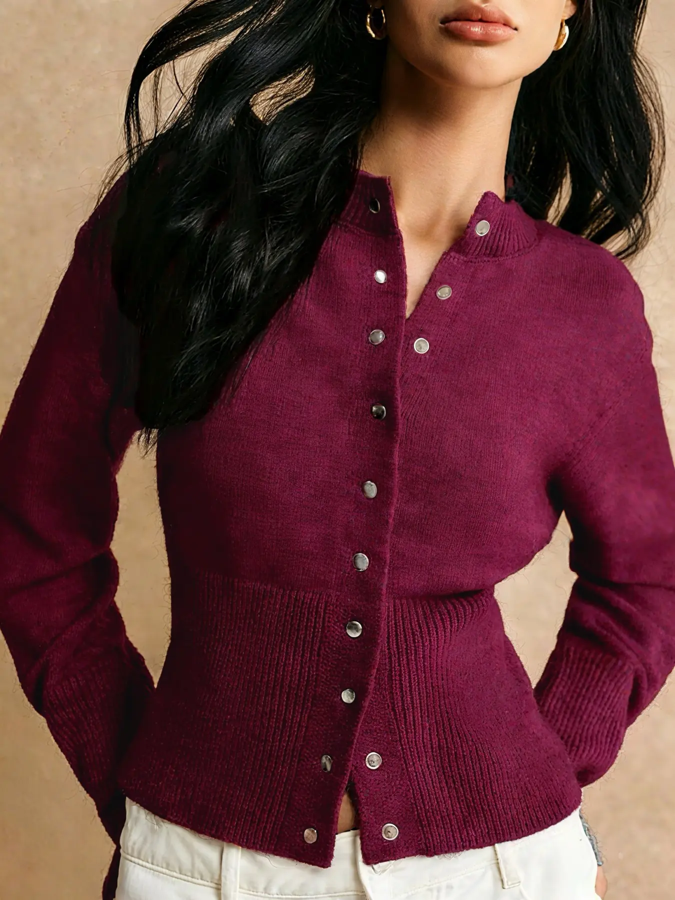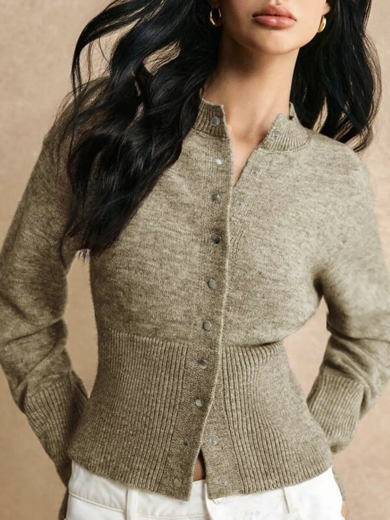5. Elegant Slim-Fit Button-Front Cardigan, Fashionable Casual Waist-Centric Knitwear for Fall & Winter Seasons