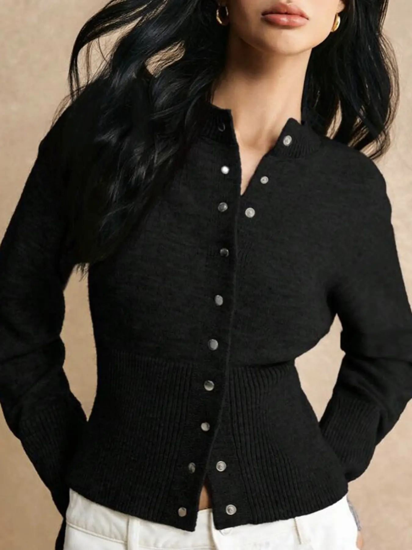 Elegant Slim-Fit Button-Front Cardigan, Fashionable Casual Waist-Centric Knitwear for Fall & Winter Seasons