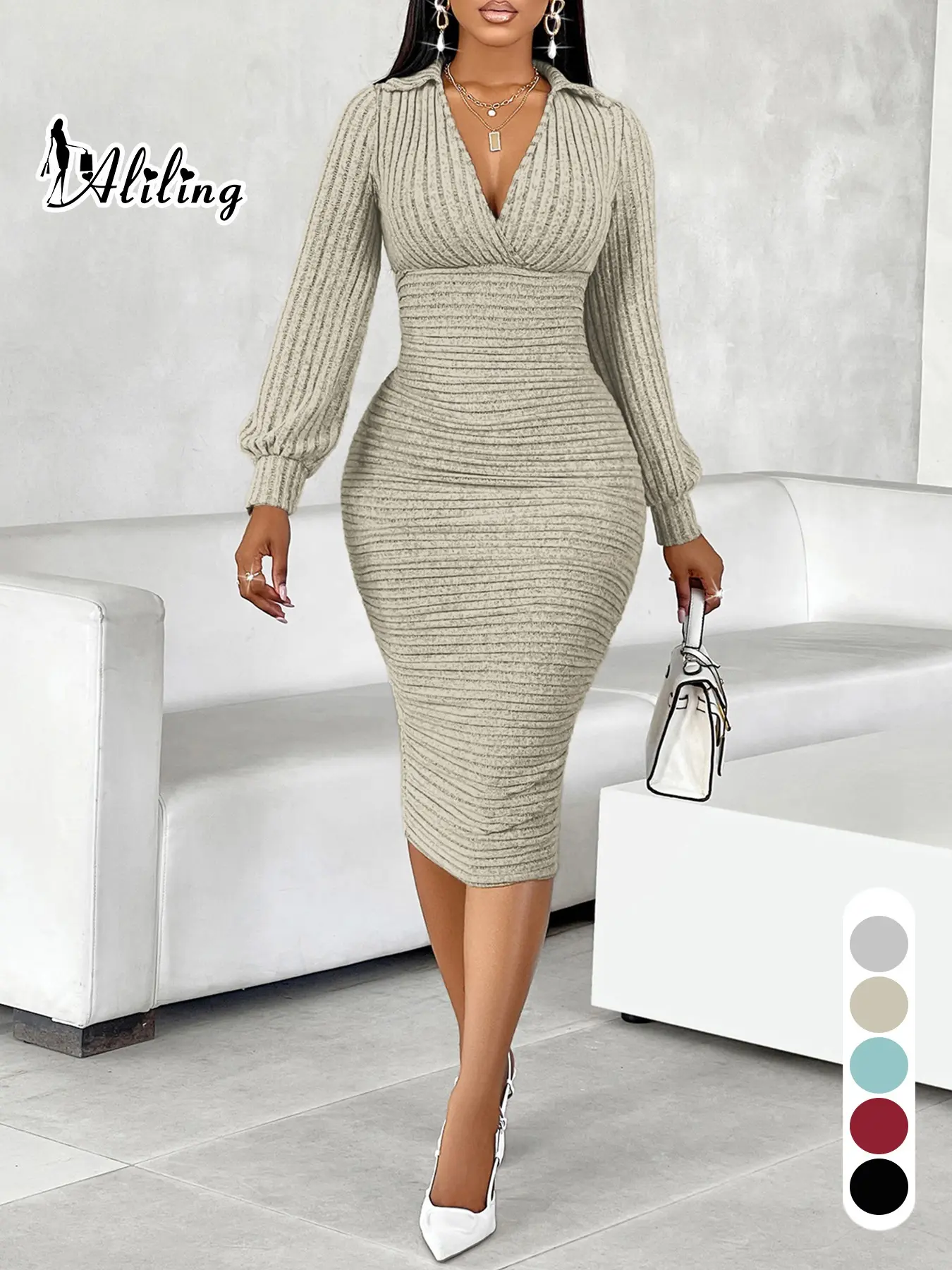 Este vestido lo vas amar que estalle tan hermoso hace la tela super buena el largo buen formar y el cuello es lo más fashion💯👍🏻👌♥️ideal para el invierno y otoño.