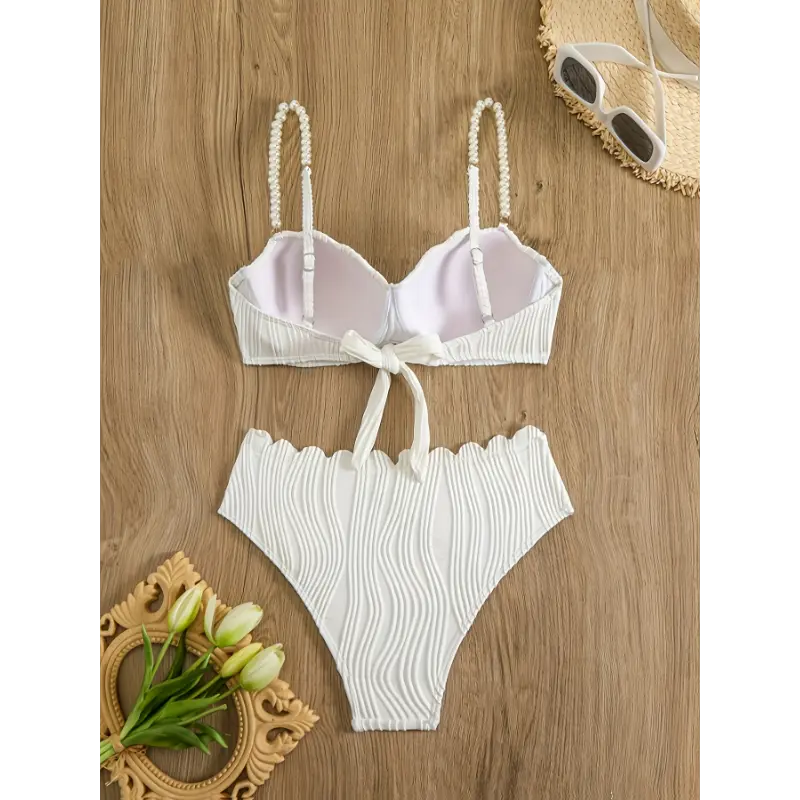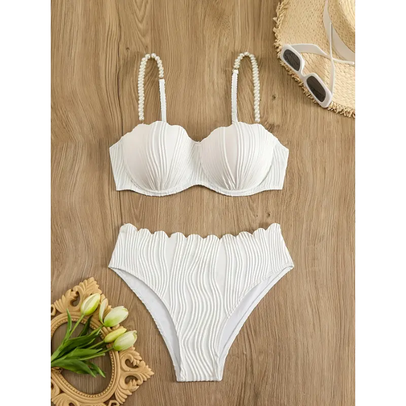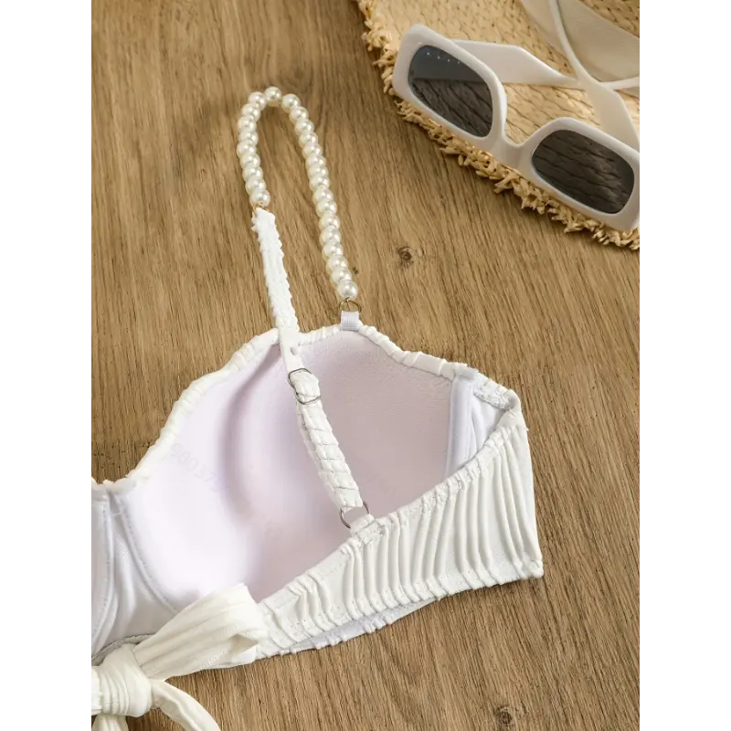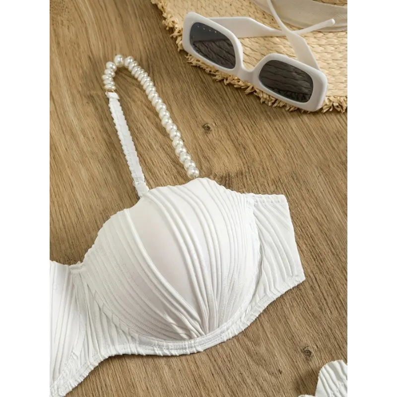 wicked unlined balconette demetra Elegant Solid Color High Stretch Polyester Bikini Set With Pearl Embellishment, Knitted Fabric Swimsuit With Sleeveless Tops And Bottoms, 95% Polyester, 5% Spandex