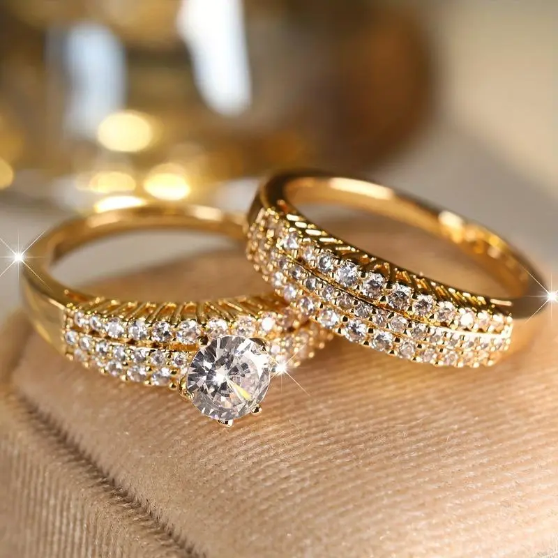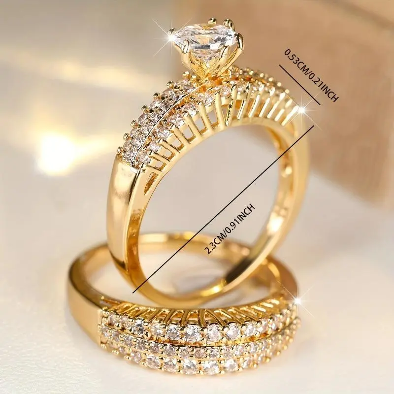 Precioso día anillos de compromisos diseñados para uso diario. Son de calor dorado, no se manchan no se ponen negros. tring #gitt #valentine #TikTokShopCreatorPicks #jewerly
