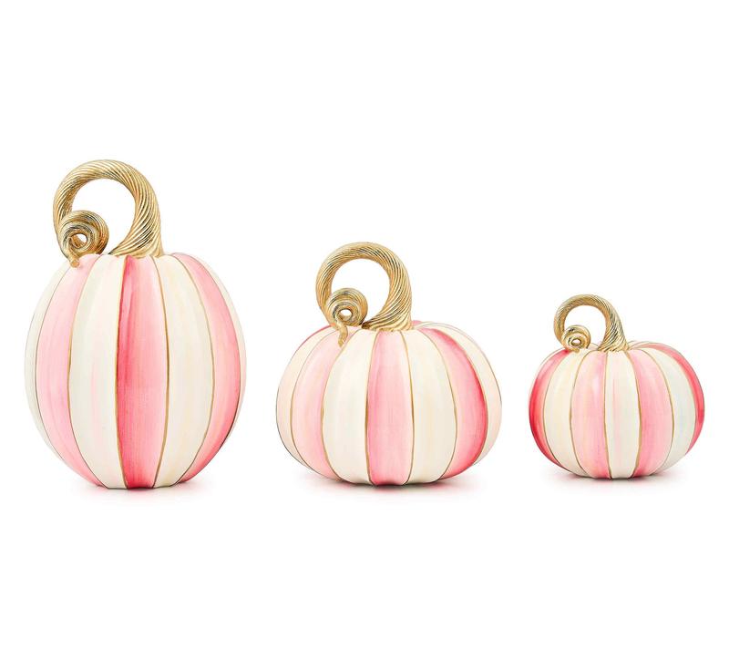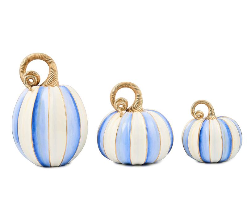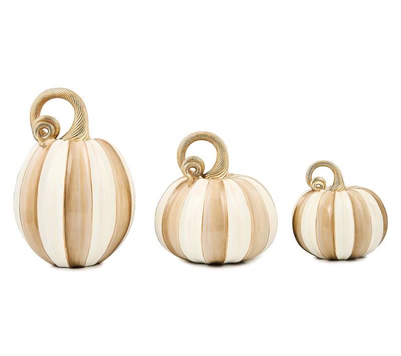 5. MacKenzie- Childs Set of 3 Elegant Stripe Pumpkins