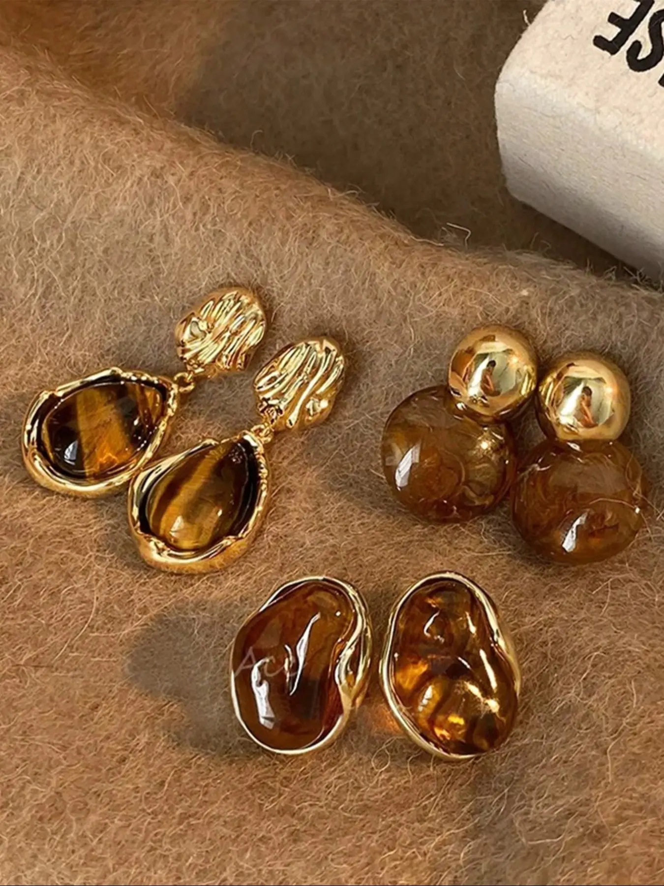 【Amber Tiger Eye】: Featuring amber-colored tiger eye stone, these earrings offer a rich hue that adds depth and character to your jewelry choices.