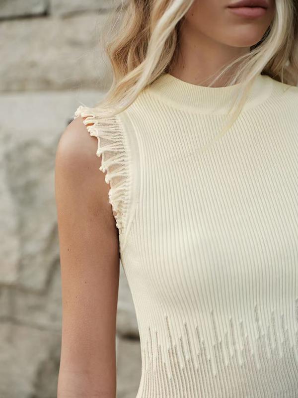 This white knitted set is amazing. The sleeveless turnleneck top with ruffles is slimming and delicate.#sweaterweather #falloutfits #ootd #cozyseason #mobwifeaesthetic #fashion #minimalistwardrobe #plussizefashion #girls #casualdress #socute #warmandstylish #madeinchina #elegantdress #sleeveless #woman