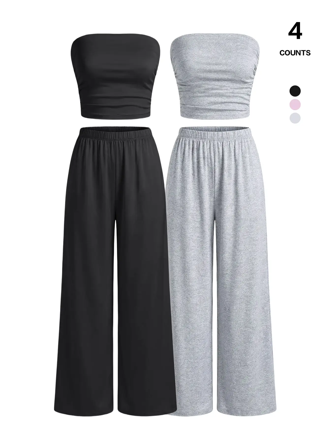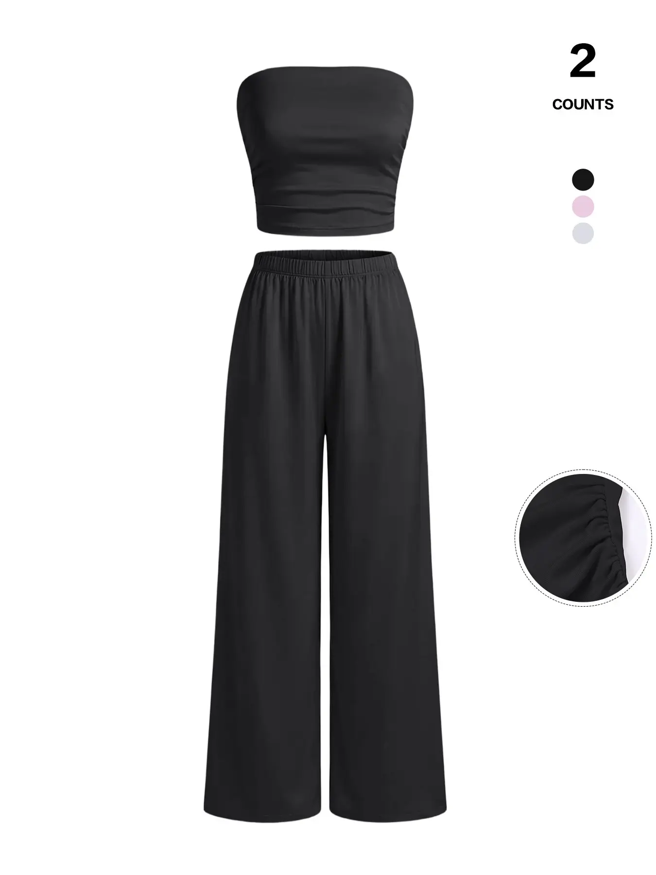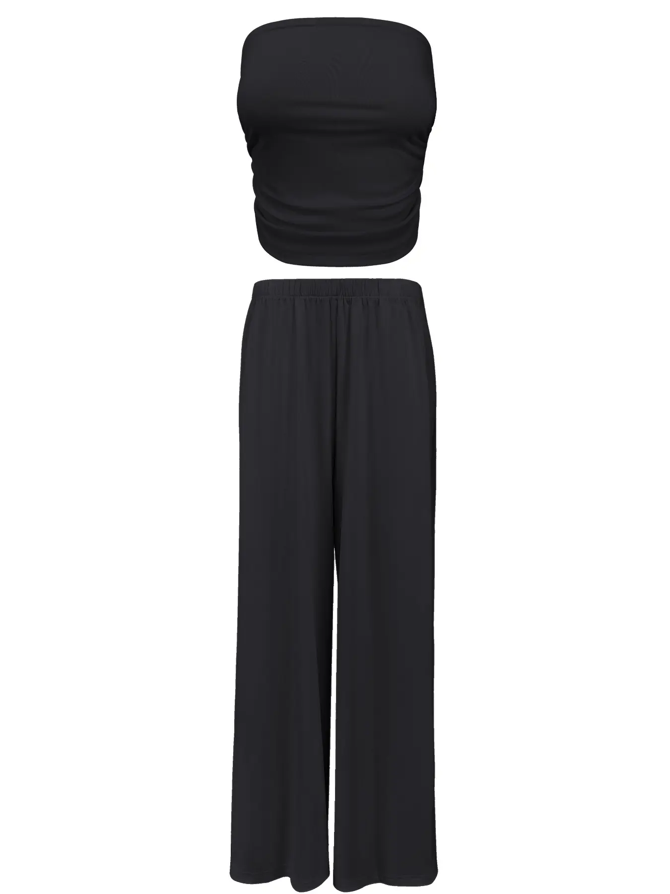 Elegant Two-Piece, Strapless Top & Wide-Leg Trousers, Lightweight & Breathable, Perfect for Spring & Summer Wear
