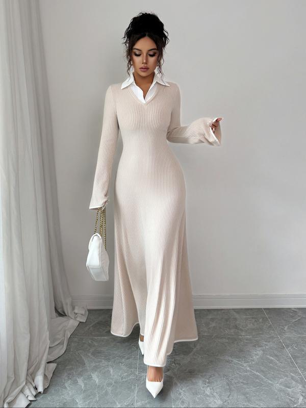 5. Fashion Elegant Shirt Collar Waist Cinched Long Sleeve Dress, Fitted Plain Design for Fall & Winter, Women's Stylish Clothing