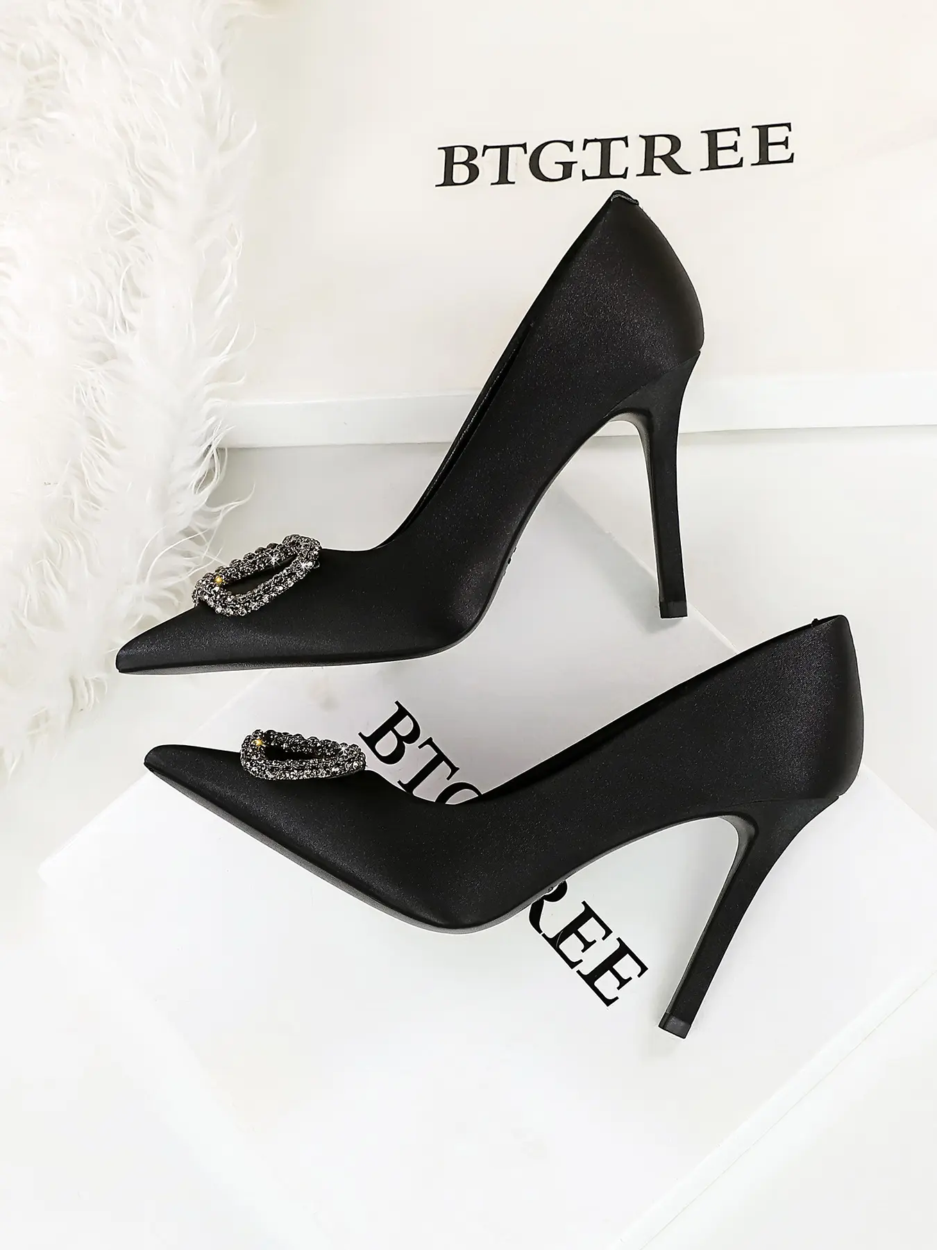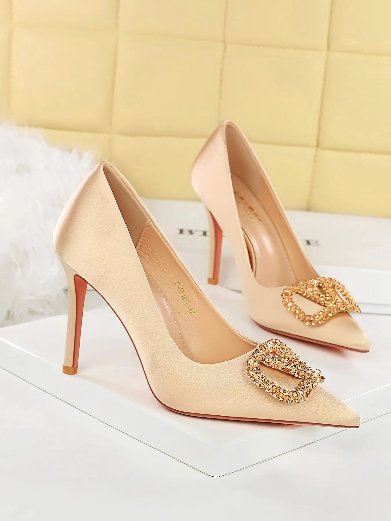 5. Elegant Water Drill V-Clip High Heel Pointed Toe Slip-On Shoes for Women, Fashionable European Style, Thin Heels, Casual & Formal Wear, Classy, Stylish
