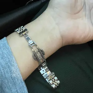 Excellent, it’s actually really, really beautiful and expensive looking. I got this so I could venture into two-tone jewelry and I’m very happy with my purchase. It is very large when you receive it so I ended up having to take out 7 links and now it’s perfect!!