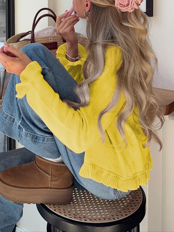 Women's Elegant Fall/winter Cardigan, Romantic French-Style Round Neck Design, Open-Front Sweater for Daily Wear & Stylish #womensfashion #sweateroutfits #womenshighfashionsweaters #geometriccardigan #buttondowncardigan #womenfashionshop #zipupcardigan #womenssweaters #colorfulcardigan #mockneckcardigan