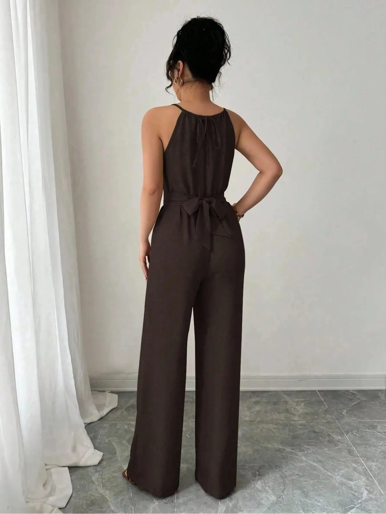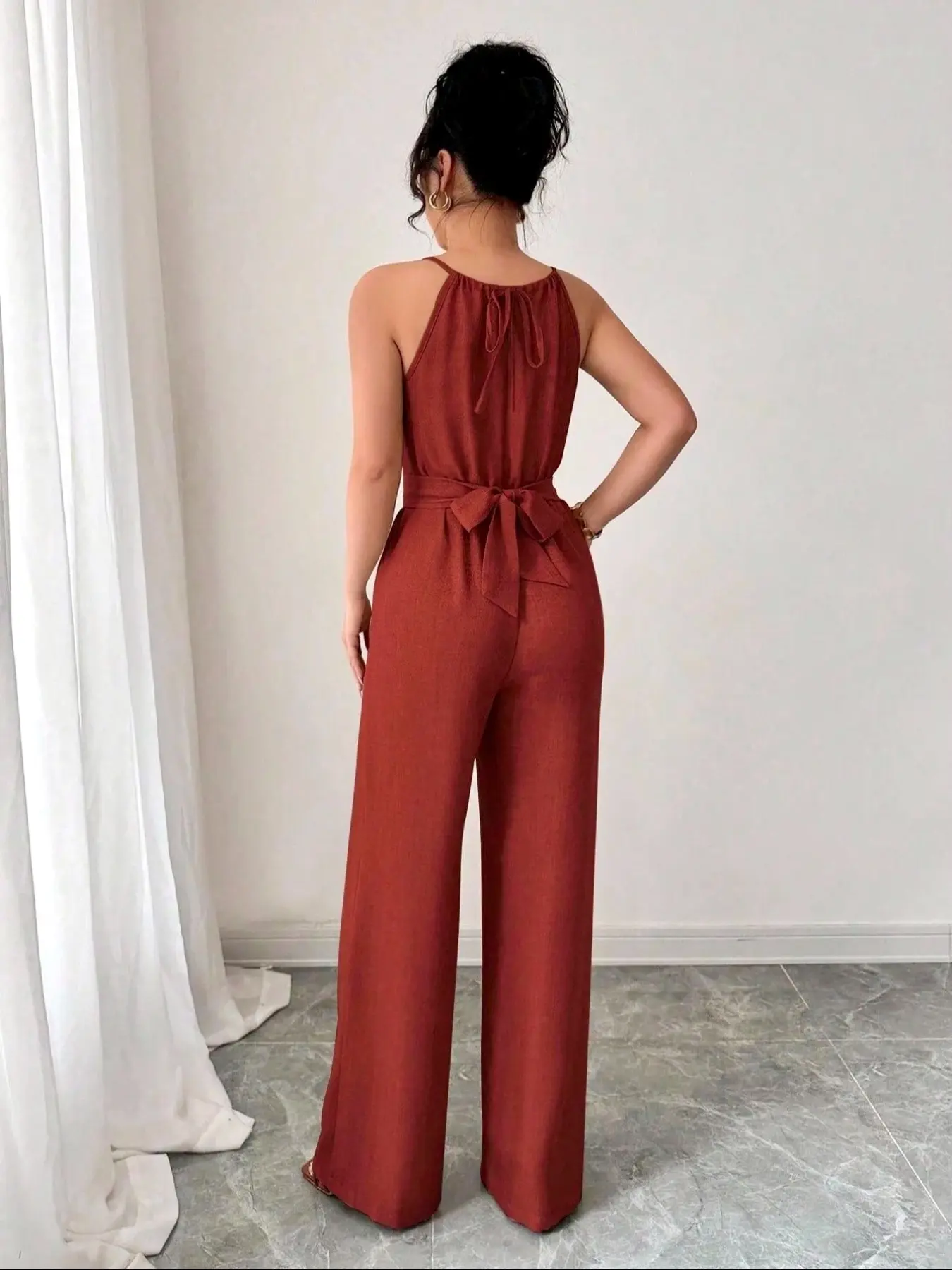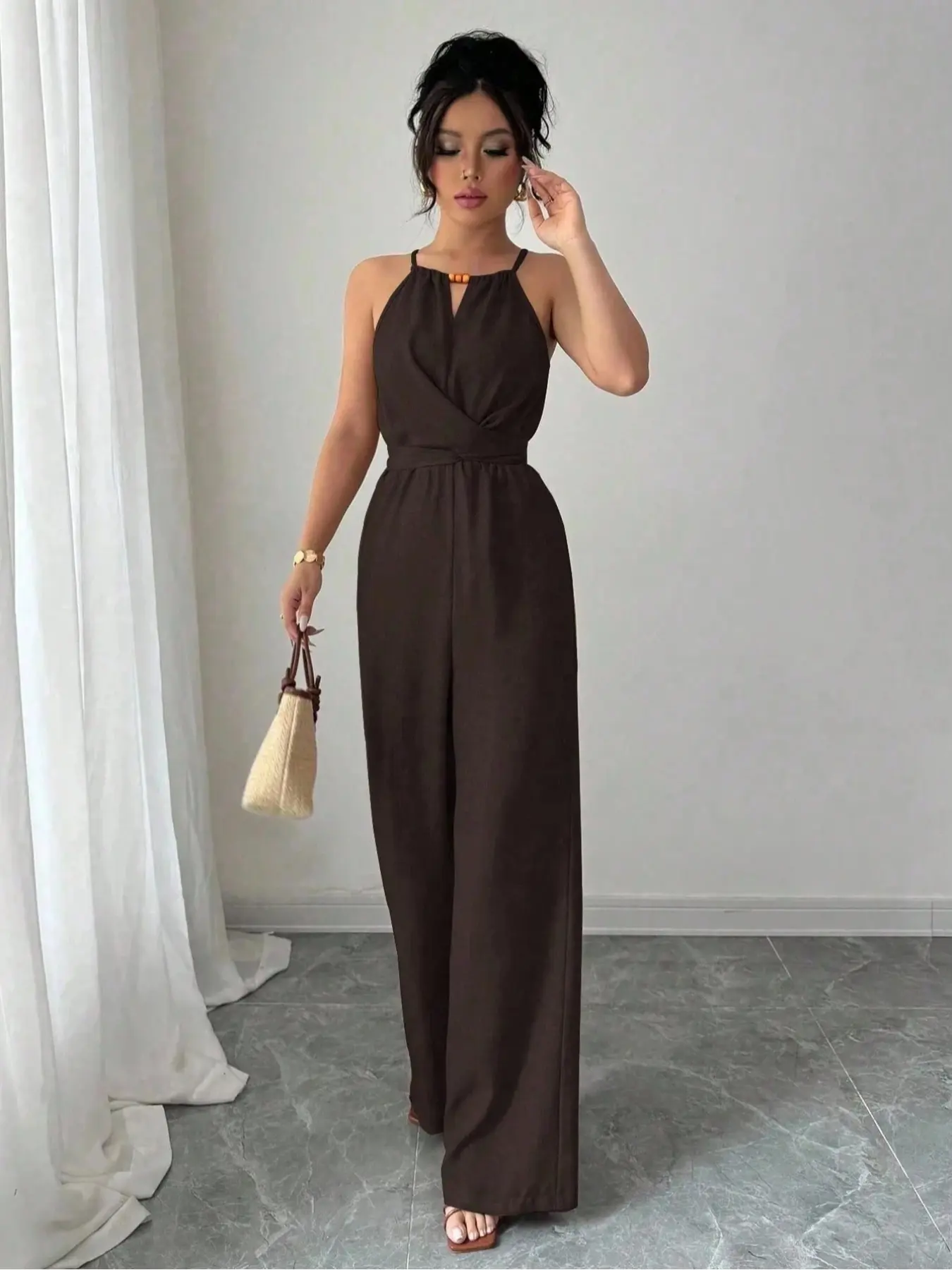5. Elegant Women's Solid Color Beaded Jumpsuit, Womenswear, Perfect for Parties and Formal Occasions, Sleeveless Design for Layering