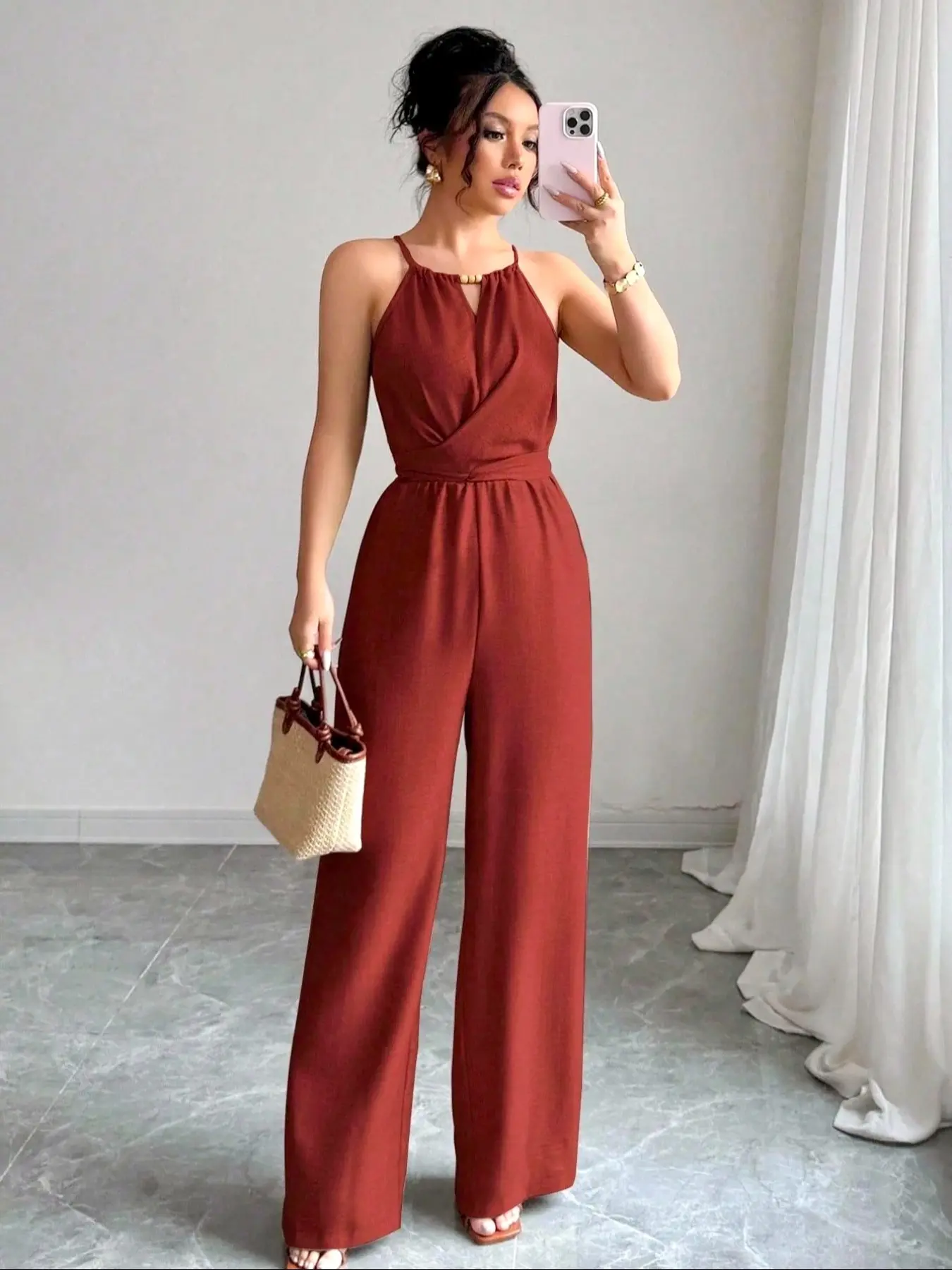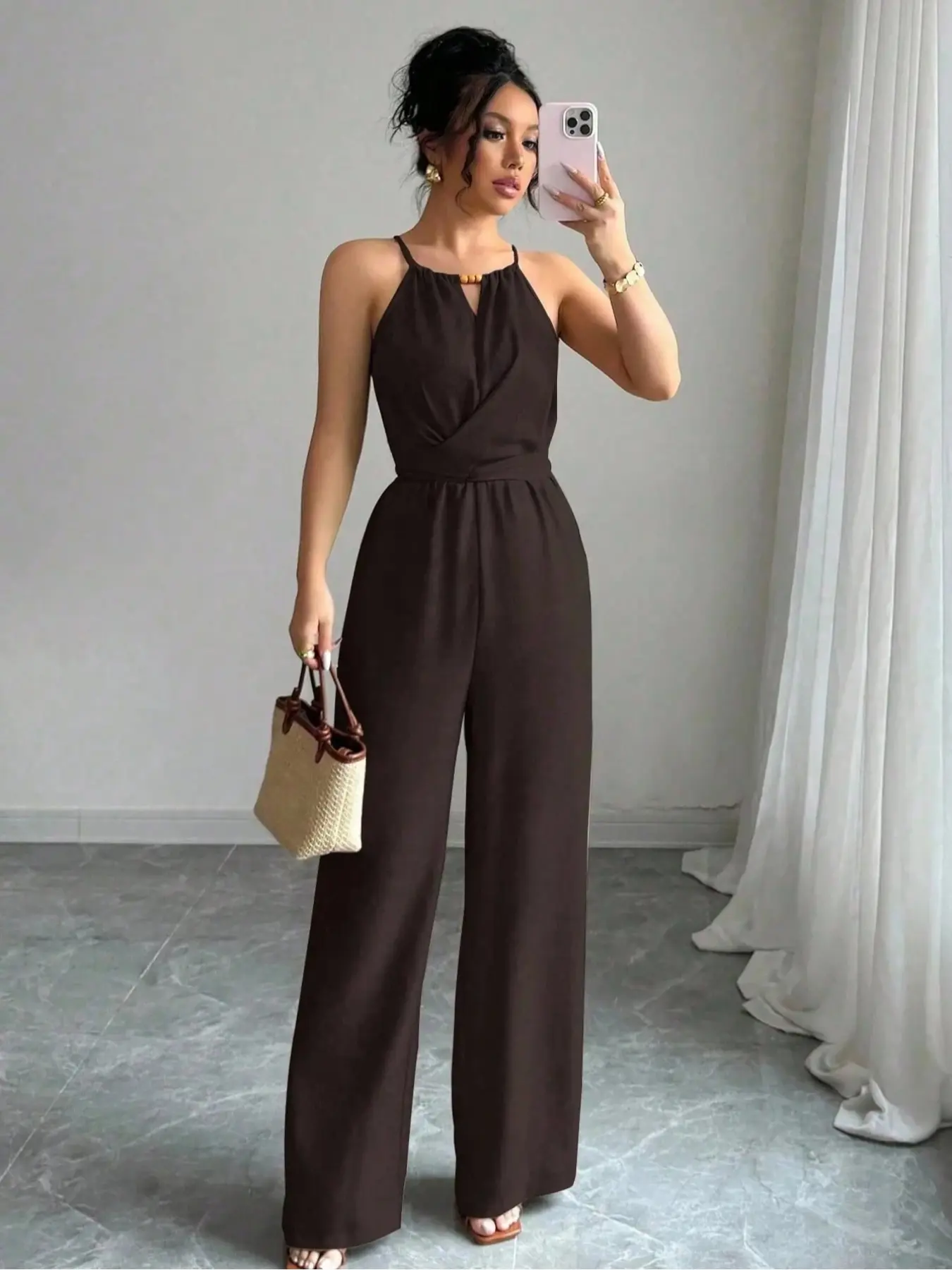 【Sophisticated Silhouette】: Crafted in an H-type silhouette, this jumpsuit offers a flattering fit that complements various body shapes.