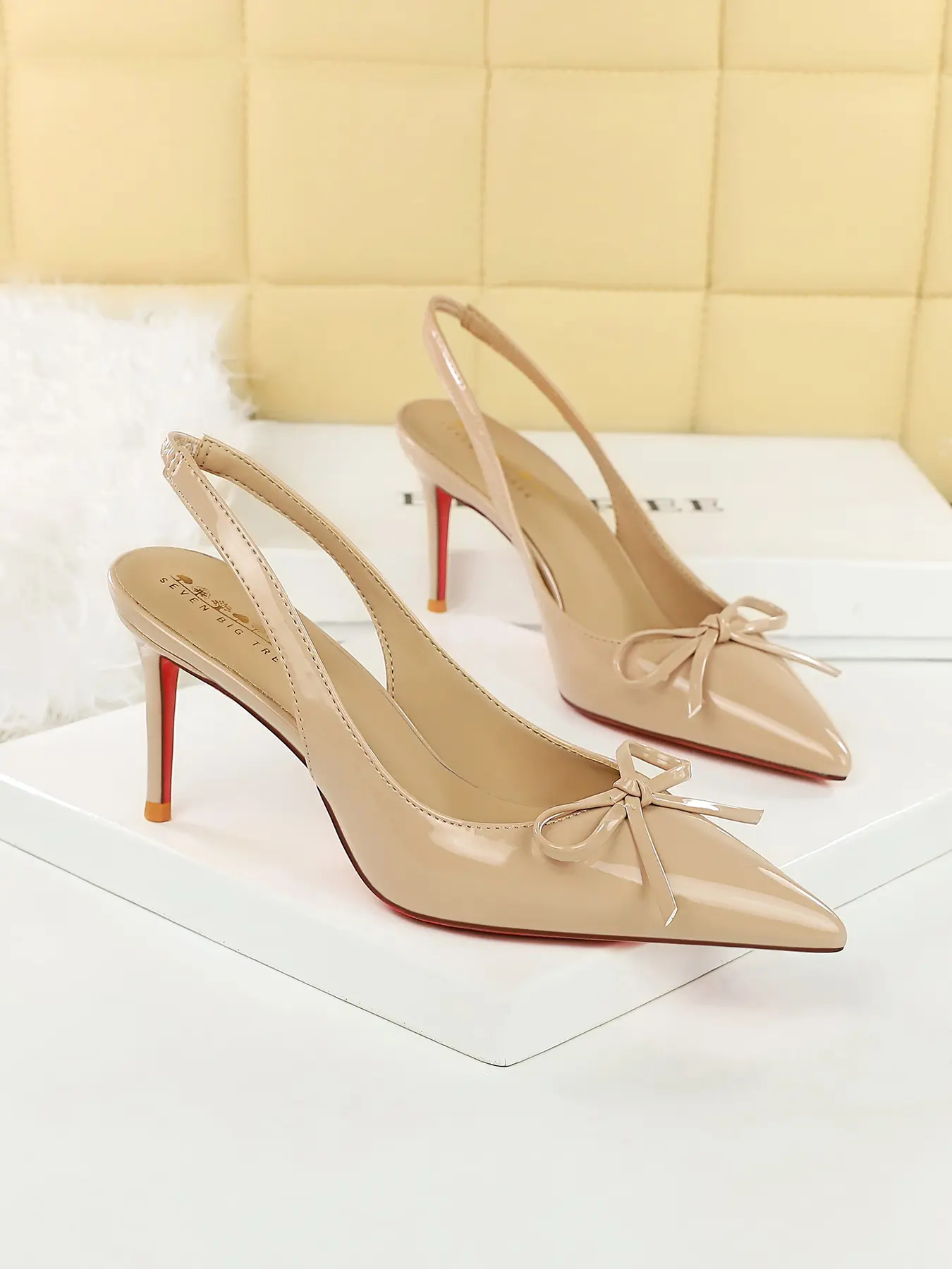 5. Elegant Women's Butterfly Knot Patent Leather Pointed Toe Slip-On Shoes, Fashionable High Heels with Buckle Strap, Perfect for Parties, Elegant Party Shoes