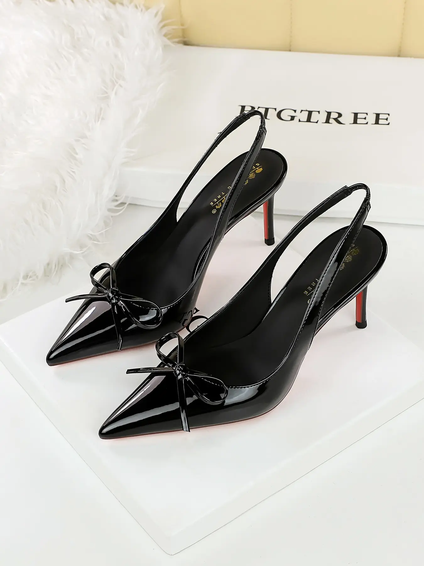 Elegant Women's Butterfly Knot Patent Leather Pointed Toe Slip-On Shoes, Fashionable High Heels with Buckle Strap, Perfect for Parties, Elegant Party ShoesElegant Women's Butterfly Knot Patent Leather Pointed Toe Slip-On Shoes, Fashionable High Heels with Buckle Strap, Perfect for Parties, Elegant Party Shoes