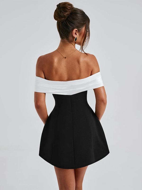 One Shoulder Colorblock Party Dress, Backless Slim-Fitting Short Dress, Elegant Christmas & Holiday Wear, Fall & Winter Fashion Womenswear