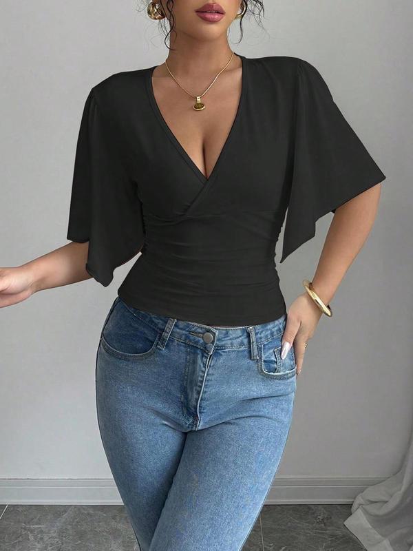 Exactly as shown in the picture and super comfortable. Super low cut V neck though and it slips down so pay attention to that lol.