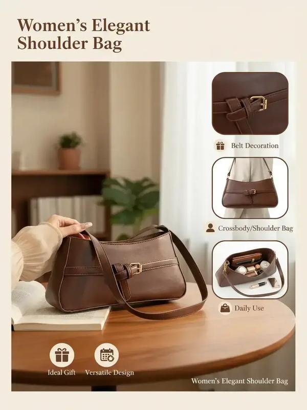 5. Elegant Women's Shoulder Bag with Belt Decoration, Casual Fashion Crossbody/shoulder Bag, Ideal Gift for Daily Use, Versatile Design, Everyday Bag