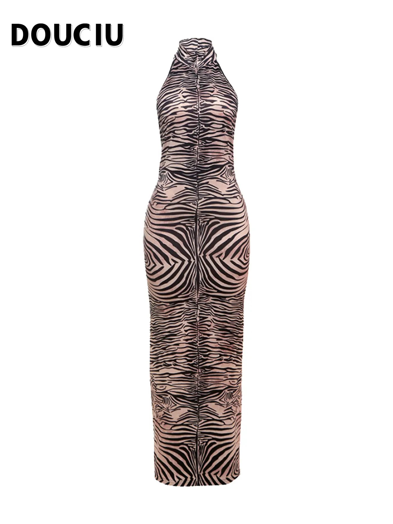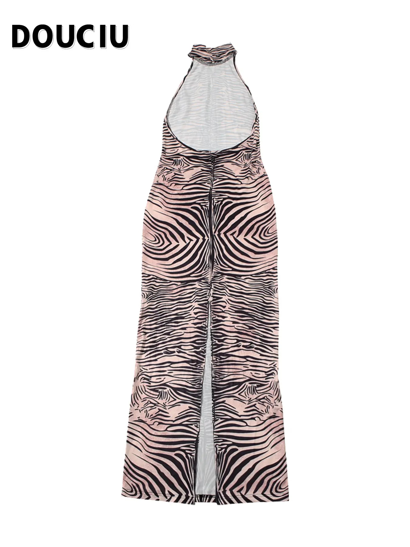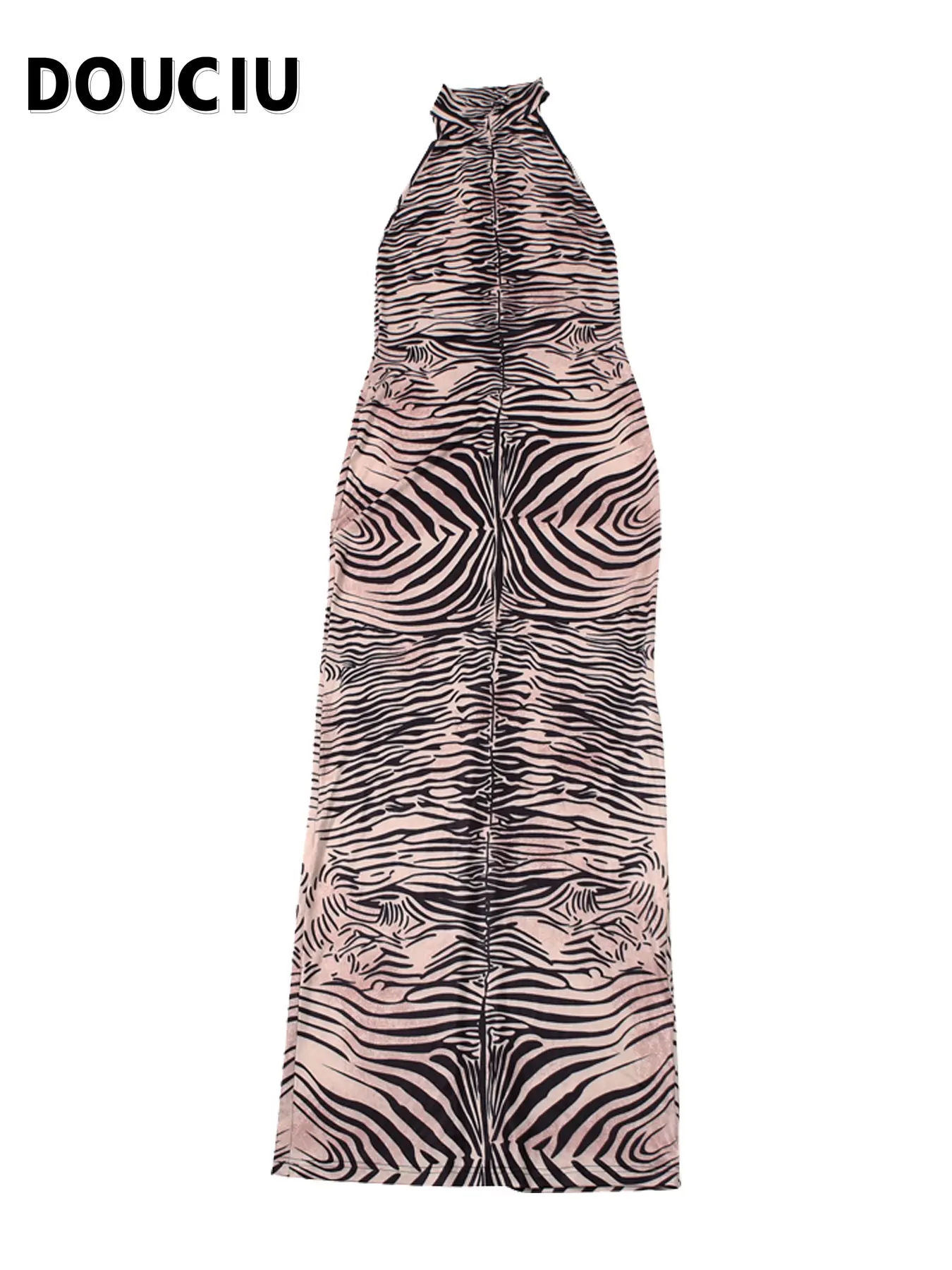 DOUCIU Summer Personality Street Sexy Elegant Cool Women'S Thin Printed Long Straight Sleeveless Backless Dress