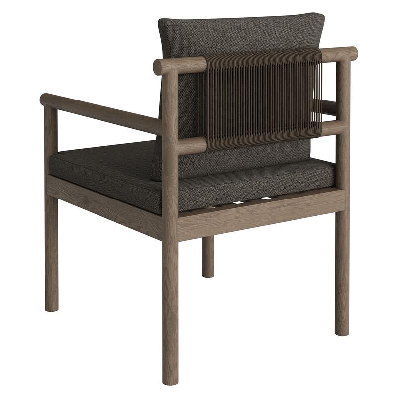 Eleni Outdoor Patio Teak Wood Rope Dining Chair in Weathered Gray Flint