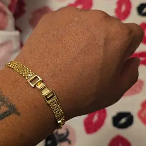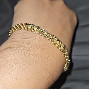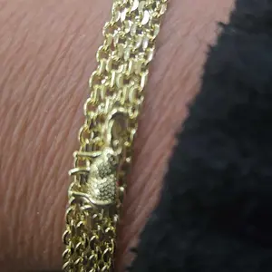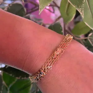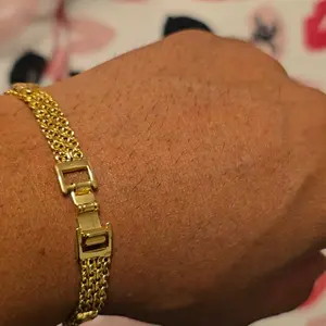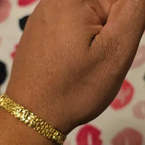 La verdad me sorprendió este brazalete es muy hermoso y elegante,lo usé para la fiesta de una amiga y gustó mucho,su baño en oro lo hace muy auténtico.Lo recomiendo 💯