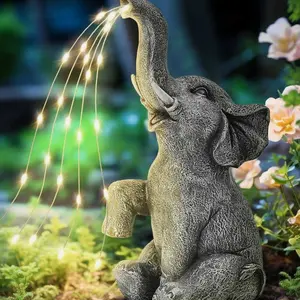 ·【Garden Decor】This elephant figurine is made of high-quality resin with solar-powered LED strings. At night, when the solar string lights up and looks like water flows, adds a warm and lively atmosphere to the garden, yard, or patio.