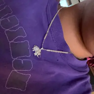 Cute and small. The chain is thin but durable. Just be careful with stacking necklaces and pulling and tugging other than that perfect buy