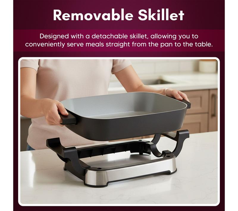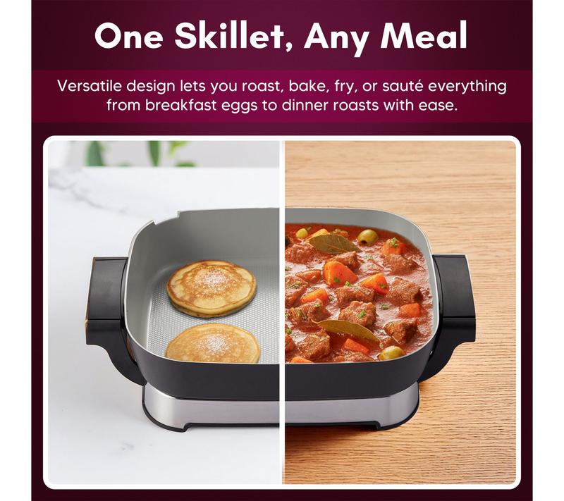 From frying up a hearty breakfast to simmering savory stews for dinner parties, this foldable electric skillet makes cooking and serving for a crowd effortless. Its spacious design, adjustable temperature control, and ceramic nonstick surface help you whip up everything from crispy bacon to golden pancakes -- all with easy cleanup and compact storage for busy kitchens. From Elite Cuisine.