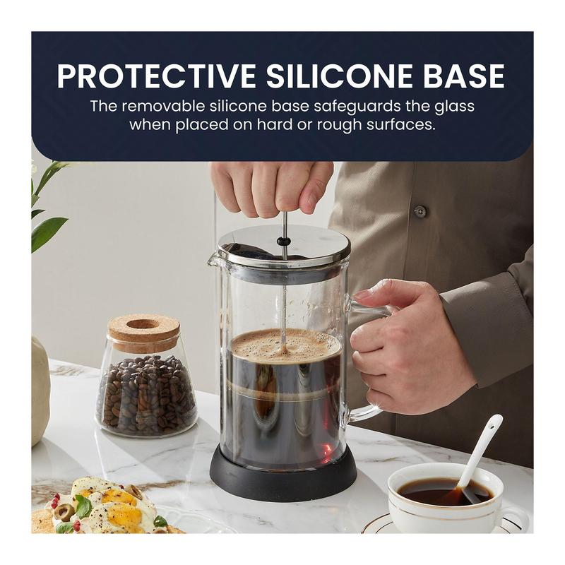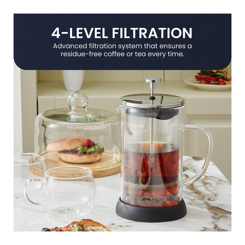 Enjoy a perfect brew every time with the Elite Cuisine 4-cup french press glass coffee maker. This elegant coffee maker features double-wall insulated borosilicate glass, 3x thicker than competitors, ensuring your coffee stays hot while preserving its rich, natural flavors. From Elite Cuisine.