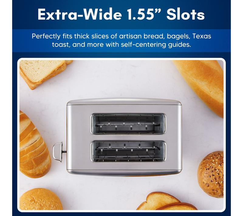 ·Extra-wide 1.55" slots accommodate thick breads, bagels, waffles, pastries, and more