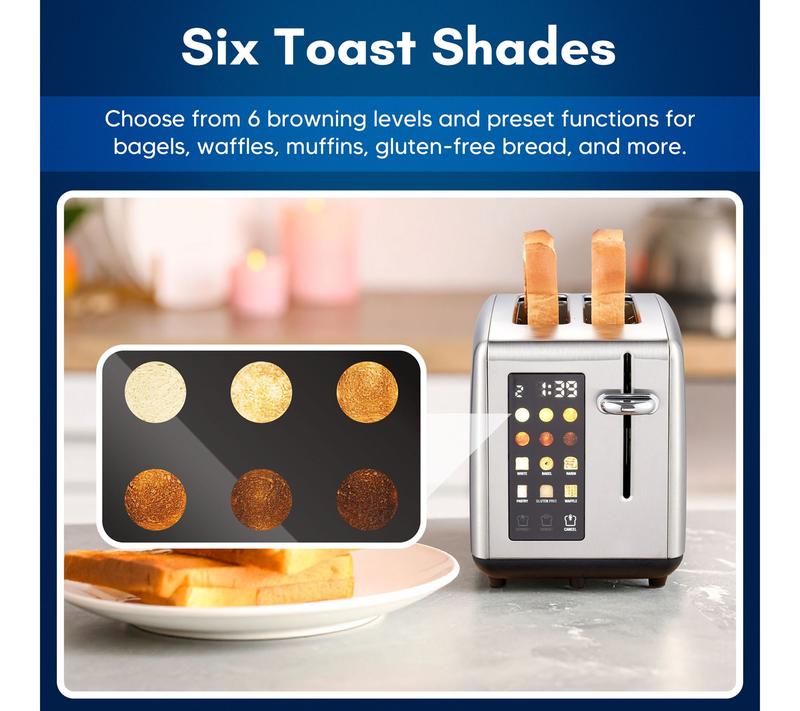 ·SmartToast capacitive touch screen with clear icons, countdown timers, and six browning levels