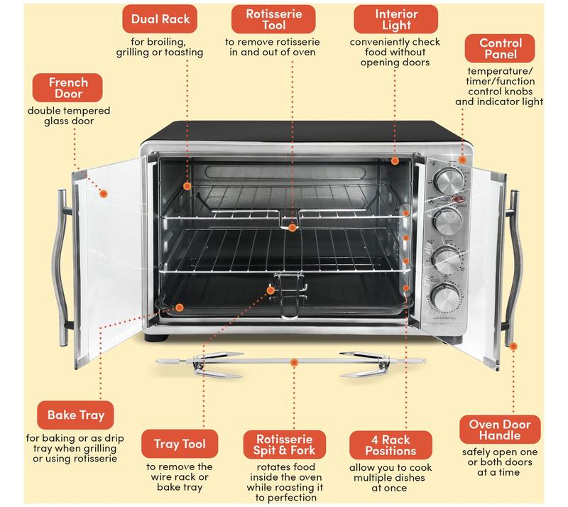 I absolutely love this double door rotisserie oven and its multifunction! I do not regret this purchase..