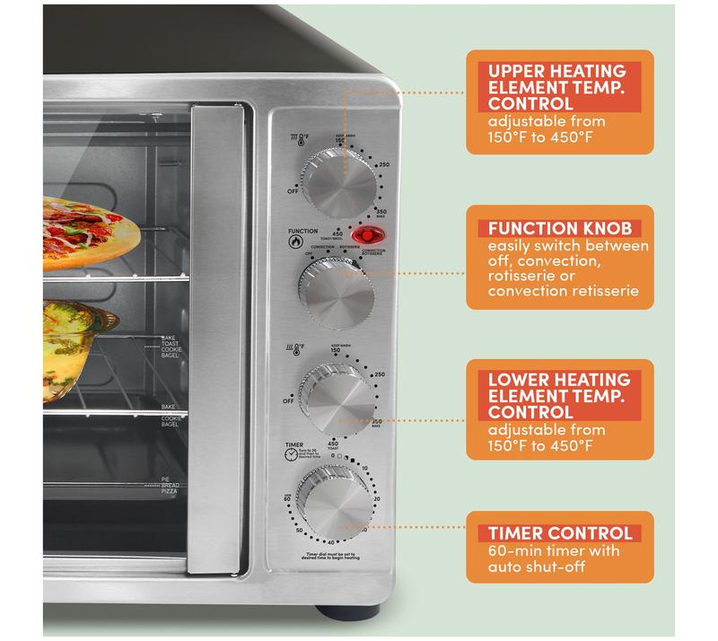 Toast, bake, broil, and rotisserie your way to delicious, hearty meals and decadent desserts with this double door, countertop oven. From Elite.