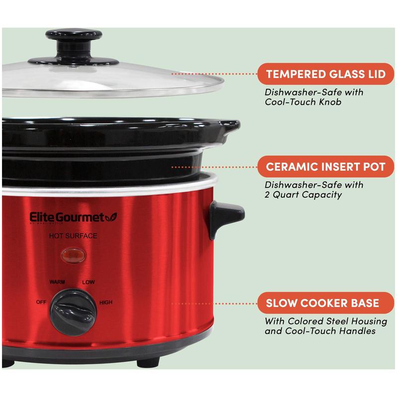 Elite Gourmet 2 Qt Oval Slow Cooker Red
