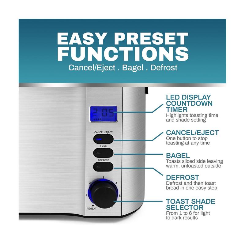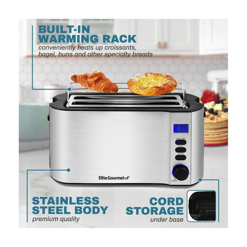 Elite Gourmet 4-Slice Digital SS Long-Slot Toaster