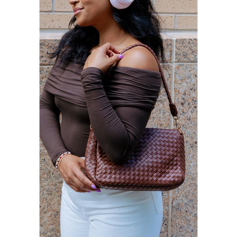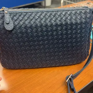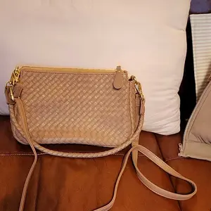 This purse is absolutely stunning! Very soft and a lot of room inside. Gorgeous 😍 Love that it has two straps...one weave and crossbody leather! Got mauve and navy! Love!!!