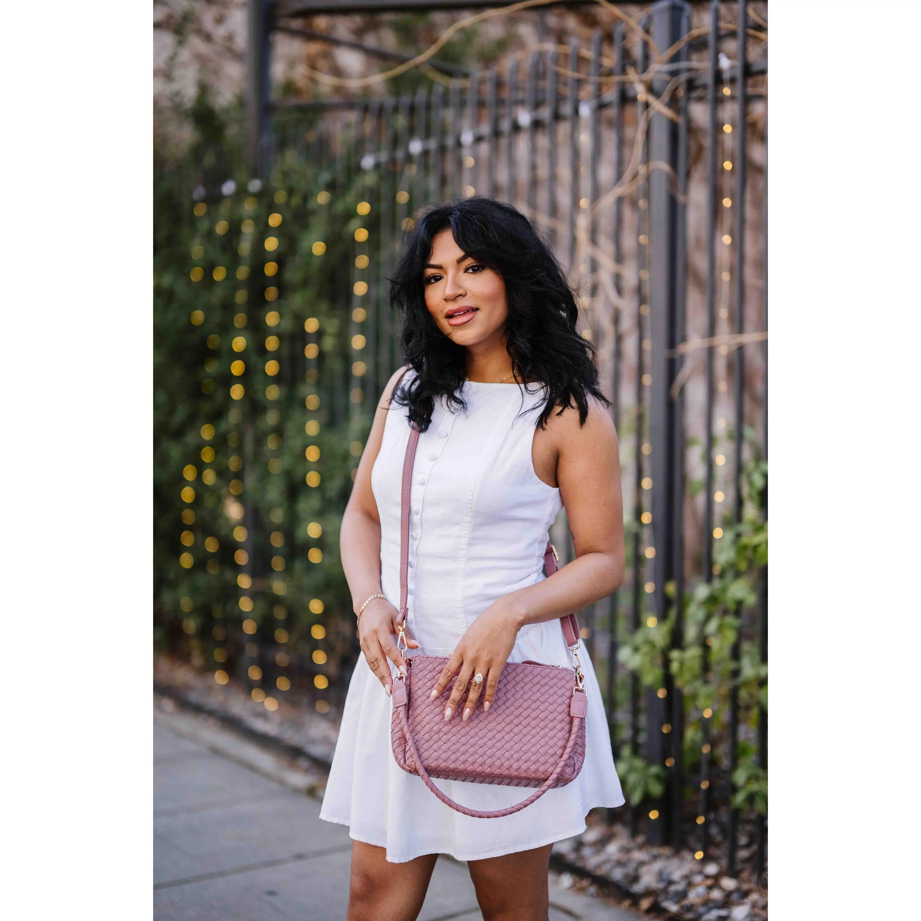 The Elle Woven Crossbody bag for women features a stylish woven texture and polished gold hardware, giving this crossbody purse a modern, effortlessly elevated look.